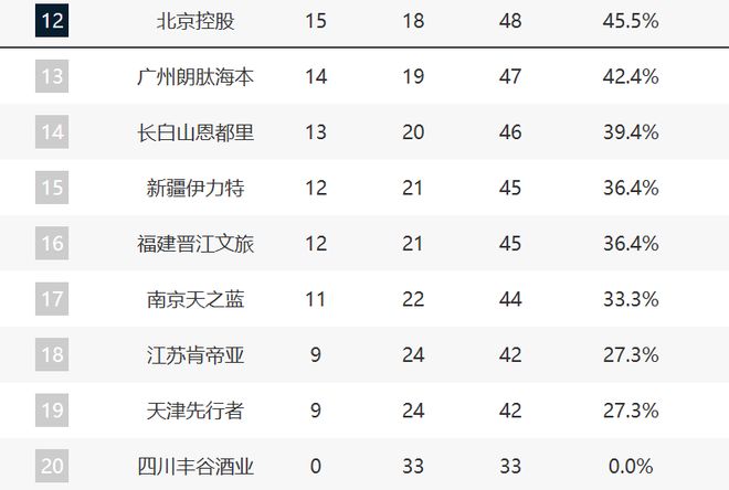 CBA最新排名!北京掉队,北控夺卡位战锁定第12,13-20全连败!