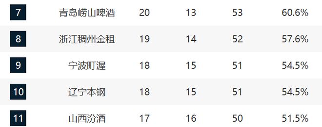 青岛和浙江保持连胜,他们的排名没有任何变化。而他们距离北京也不远,估计后续会直指第六的位置。
